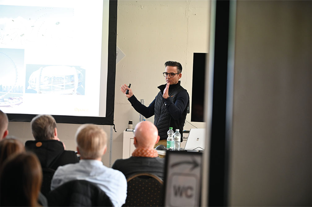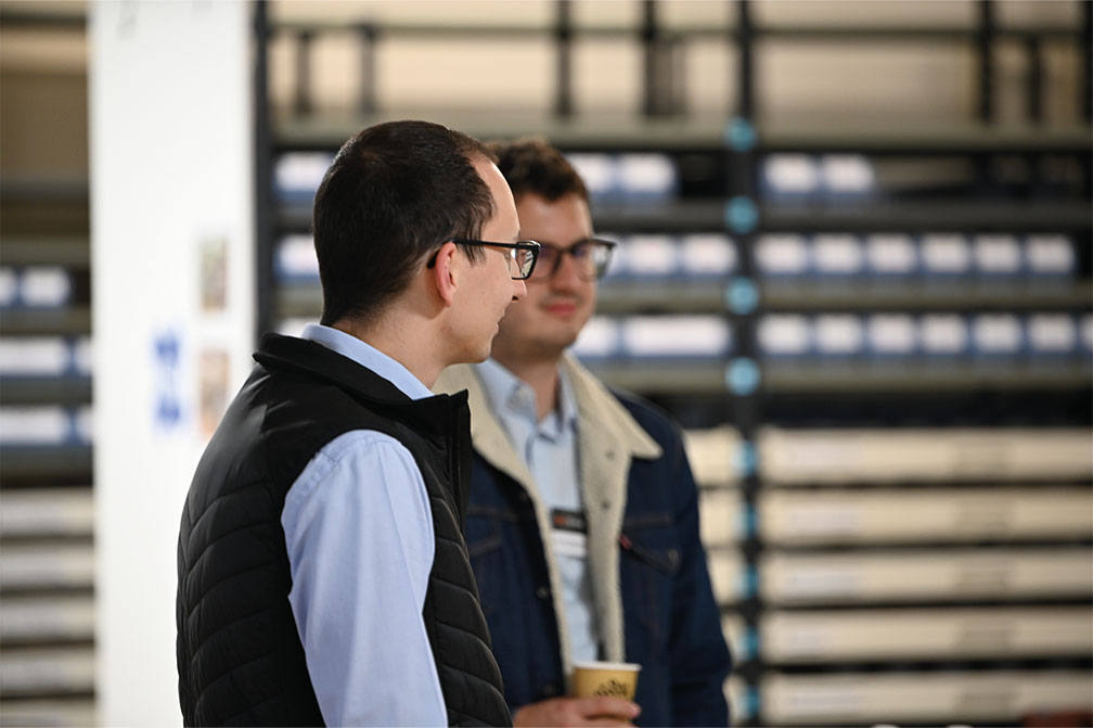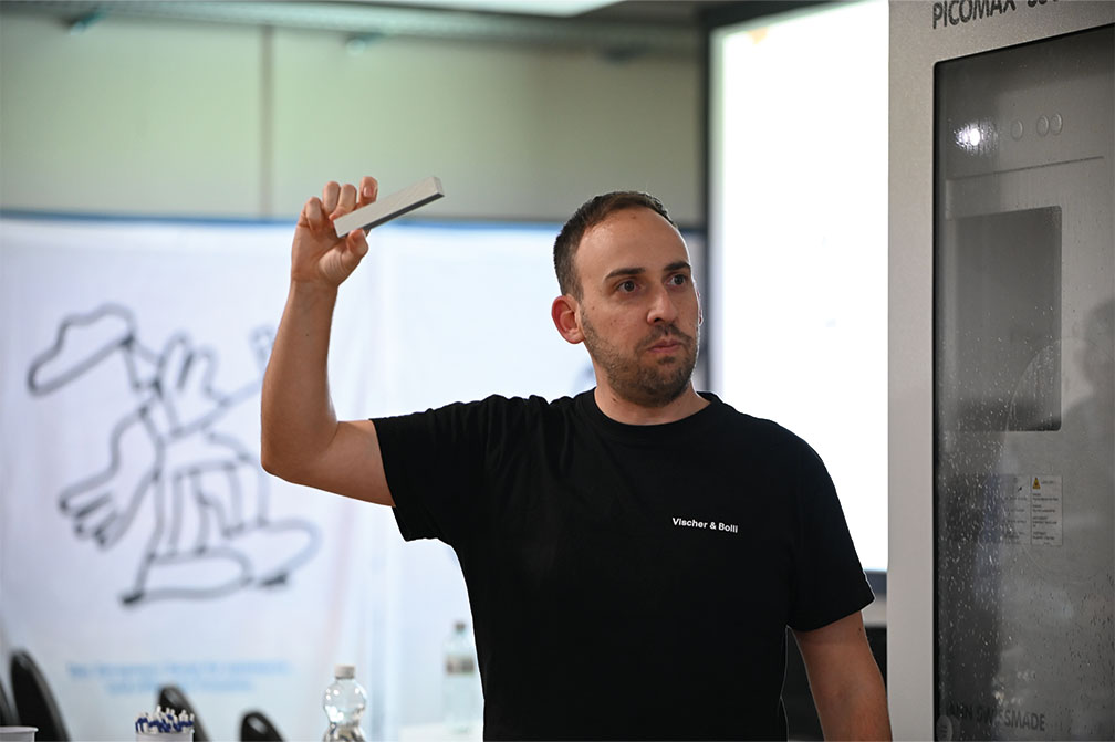 Fabian Wettstein übernahm anschliessend das Wort und zeigte eindrucksvoll, was in den letzten sechs Jahren gelungen ist. Vischer & Bolli hat sich zum führenden Industriehändler der Schweiz entwickelt – trotz und gerade wegen der wirtschaftlichen Herausforderungen der letzten 20 Jahre: von der Dotcom-Blase über Finanzkrisen, Corona bis zu aktuellen Zollthemen. Er führte durch die Entwicklung der letzten 25 Jahre – vom klassischen Werkzeughandel zum digital vernetzten Prozess- und Dienstleistungsunternehmen. Heute laufen Bestellungen vom Eingang bis zum Checkout vollautomatisch – eine Leistung, die nur dank sauberer und angereicherter Daten möglich ist.