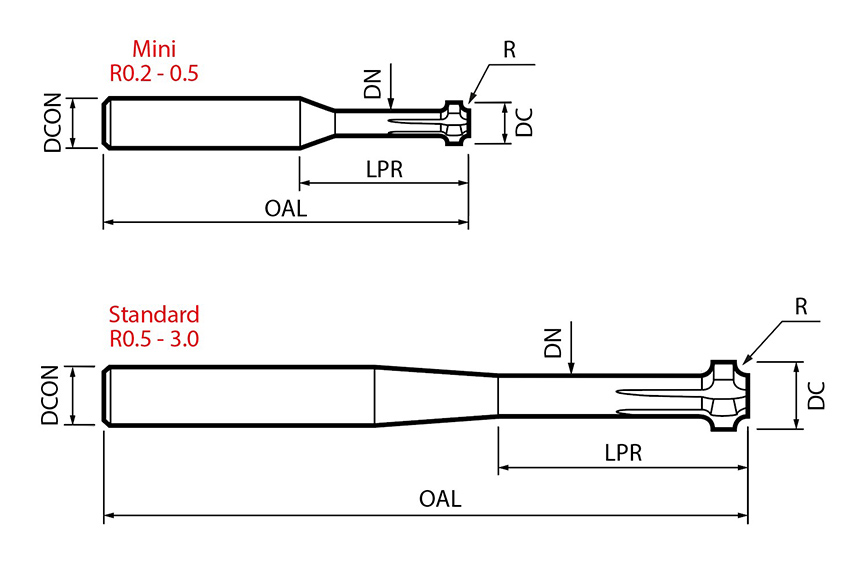 Fresa a quarto di cerchio avanti / indietro mini